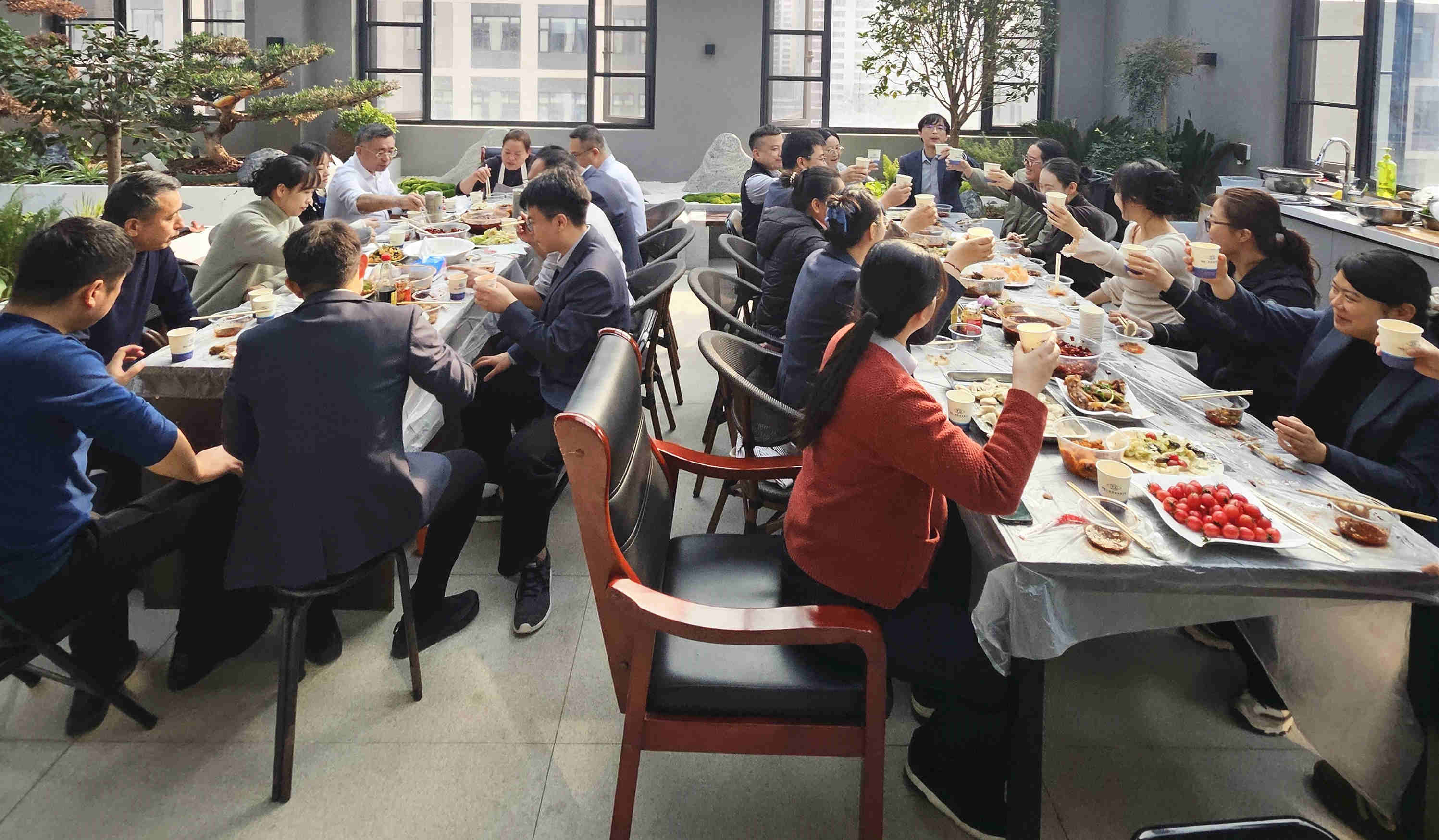 清水飄芙蓉,元寶落玉盤(pán)。熱氣騰騰的餃子陸續(xù)出鍋,誘人的香氣彌漫開(kāi)來(lái)。員工們圍坐在一起,品嘗著親手制作的美味成果,醋香、辣油各取所愛(ài),咬一口餃子,暖意從舌尖直達(dá)心底,瞬間驅(qū)散了冬日的寒意。大家一邊享用美食,一邊分享工作趣事,這一刻,忙碌的工作壓力煙消云散,取而代之的是節(jié)日的喜悅和滿滿的歸屬感。
